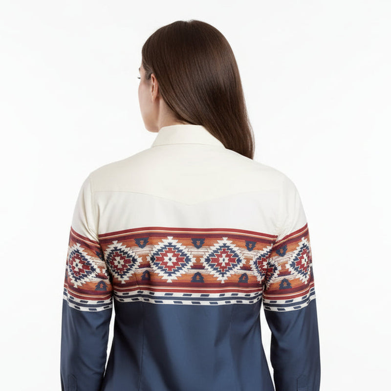 Roper Women's Vintage Collection Shirt - Aztec Print Blue / White / Orange