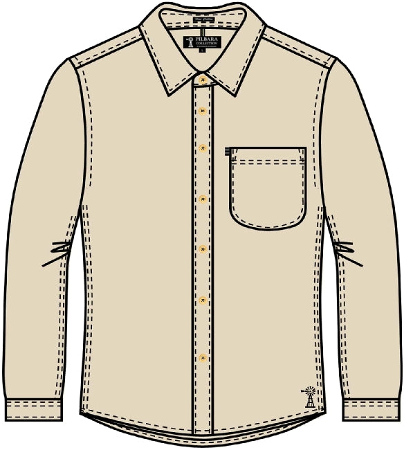 Pilbara Men Classic Fit Long Sleeve Linen Shirt - Stone. Online Australia.