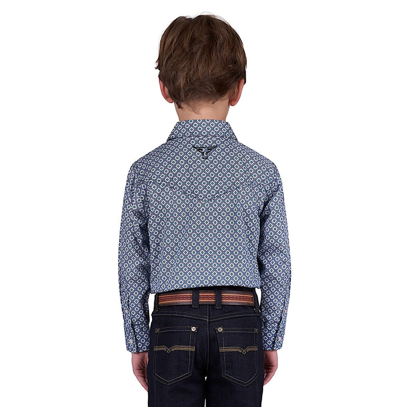 Pure Western Boy's Mark Print Western Shirt - Navy/Teal
