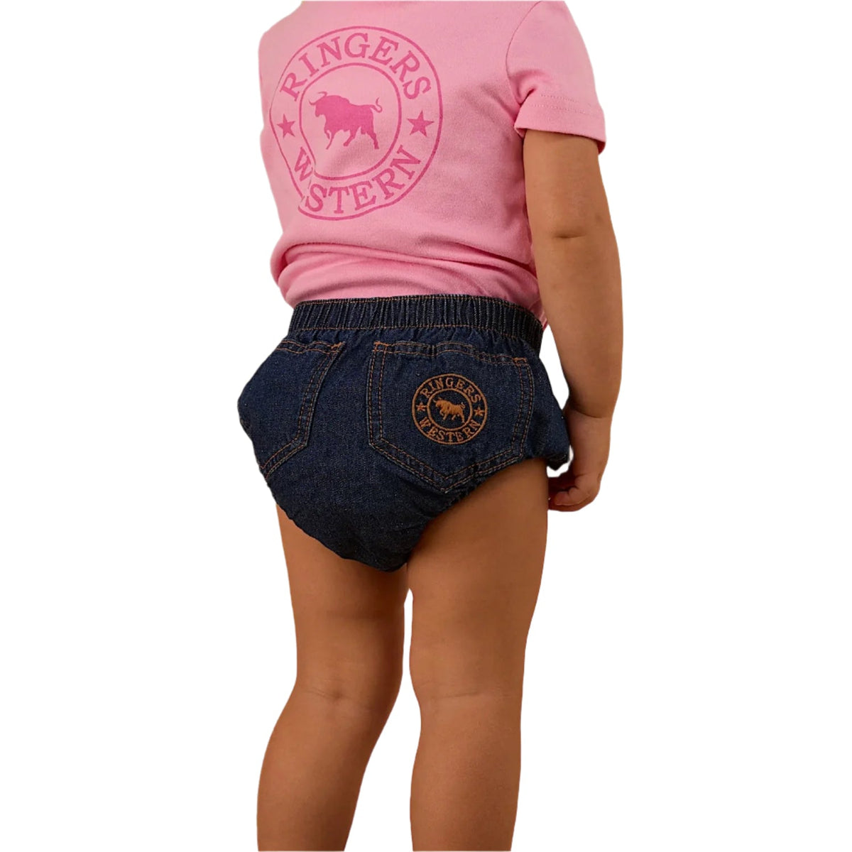 The Mila Nappy Bloomer has got cuteness covered - created from 100% cotton denim, the Mila Bloomer's are super soft and breathable and will keep bub smiling all day long. The relaxed fit style features an elasticated waistband and leg hems for a snug and comfortable fit, whilst making those unexpected nappy changes a breeze. Signature Ringers Western embroidery features on the back pockets adding an extra touch of Ringer's flair.