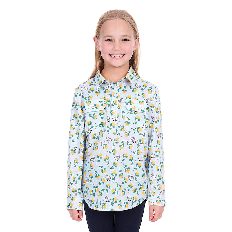 Hard Slog Girl's Suzie 1/2 Placket Shirt - Light Blue