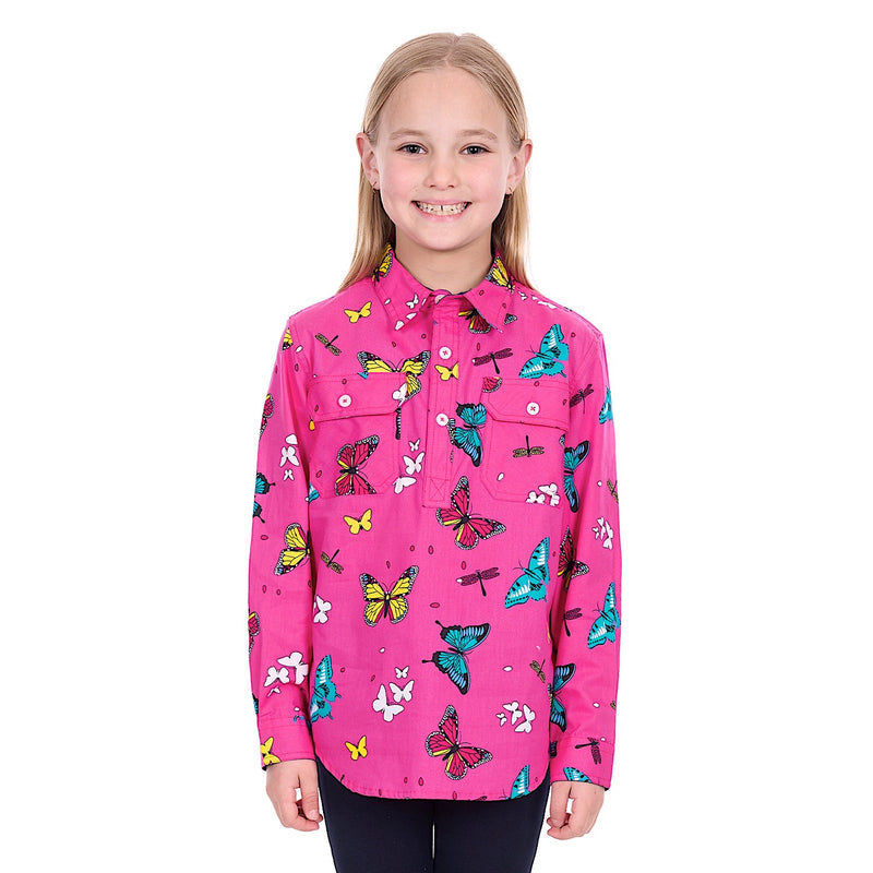 Hard Slog Girl's Giselle 1/2 Placket Shirt - Pink